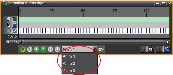 La fonction « Animation cinématique » permet de sélectionner une des cinématiques pré enregistrée au travers de la liste.