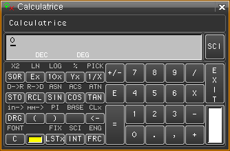 La calculatrice est disponible en 4 versions: SCI (scientifique), RPN (polonaise inverse), OPR (simple), KBD (entrée des valeurs au clavier uniquement).