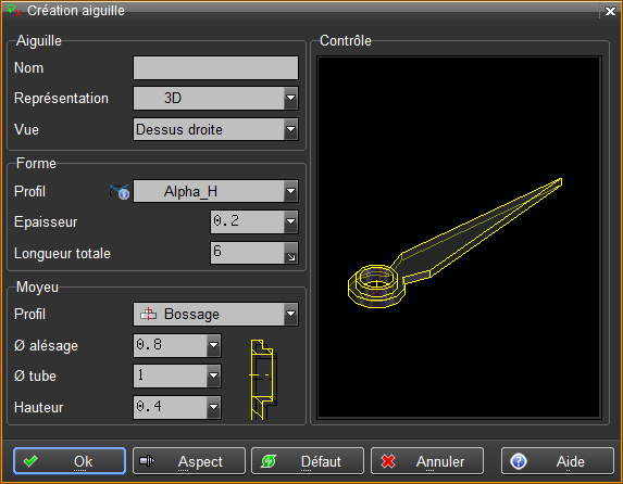 La touche modif de la souris dans la zone de sélection du profil permet de faire une sélection graphique sur toutes les formes d'aiguilles.