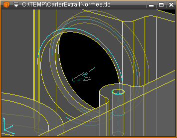 Arête courbe: axe de la surface courbe adjacente, orientation selon celle de l'objet.