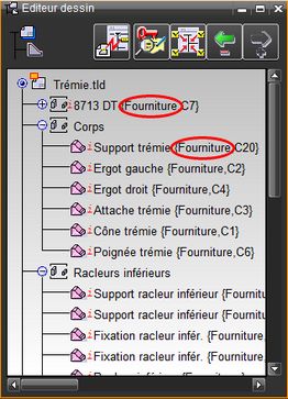 Remarque Un maximum de 49 lignes peut être insérées dans une classe. Pour insérer une nouvelle ligne utiliser les touches : [Shift] + [Insert] sur NT ou [Insert Line] sur HP Pour supprimer une ligne utiliser les touches : [Shift] + [Delete] sur NT ou [Delete Line] sur HP Numérotation Numéroter de manière automatique les Repères de nomenclature (1378) associés aux pièces informées. Préfixe : Permet de définir un préfixe alphanumérique. Premier numéro : Permet de fixer le début de la numérotation des repères (deux caractères alphanumériques). Code 1 : Permet d'ajouter une première valeur d'attribut de la pièce dans les repères. Code 2 : Permet d'ajouter une deuxième valeur d'attribut de la pièce dans les repères. Information des pièces et objets Une fois les classes créées, on peut informer les pièces avec les valeurs demandées par celles-ci. Une pièce ne peut être informée que par une seule classe. Pour cela il faut : créer des pièces et leur attribuer une classe : •soit en activant le menu contextuel dans une fenêtre de dessin, puis Edition > Modif pièce, puis bouton « Nomenclature » ; •soit en activant le menu contextuel dans l'éditeur de pièces, puis « Nomenclature... ».
