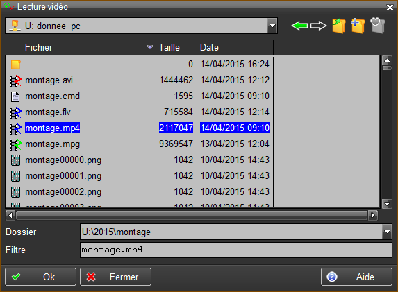 La fonction permet de sélectionner le fichier vidéo à décoder.