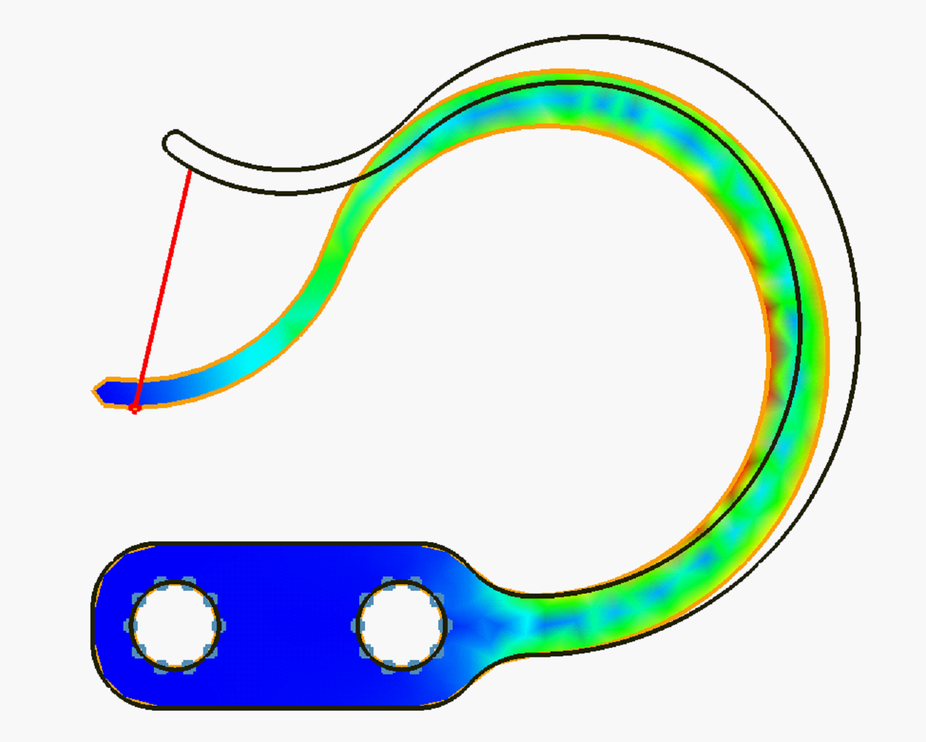 L’étude des forces et des déformations des ressorts est basée sur le maillage d’un contour quelconque. Le maillage peut être affiné à un certain endroit afin de simplifier le calcul de sa déformation. Les forces sont gérables au travers de l’épaisseur et de la matière du ressort.
