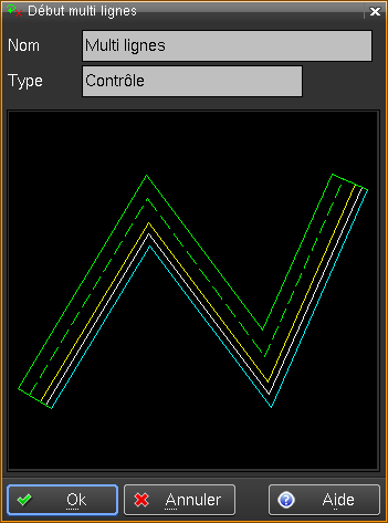 Une fois ces paramètres définis, créer une ligne conventionnelle ou tout autre élément de contour et terminer par la fonction Fin mult lig .