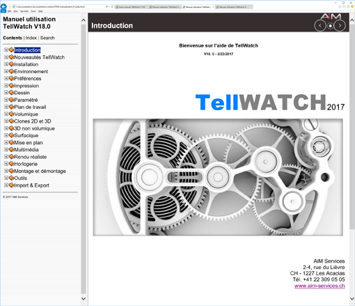 A propos, Aide interactive, Vue navigateur, Sélection navigateur, Manuel dessin, Manuel param, Manuel 3D vol, Manuel 3D surf, Manuel tuyau, Manuel multimédia, Manuel macro, Manuel API-C
