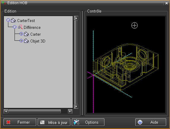 Le HOB s'ouvre dans une fenêtre « Edition HOB » avec à gauche une zone « Edition » montrant l'arbre de construction, où chaque branche peut être ouverte ou fermée.