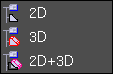 Cette option permet de sélectionner le type des pièces affichées dans la fenêtre. Soit uniquement les pièces 2D, soit uniquement les pièces 3D, soit toutes les pièces.