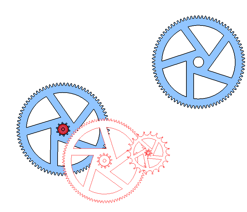 - La touche [Q] permet de bloquer l’engrènement de la deuxième roue sur la première et ainsi de définir de manière interactive l’angle de la deuxième roue