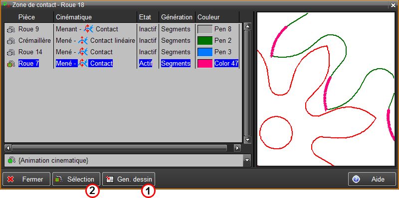Avec la touche modif de la souris sur la troisième colonne de la liste la zone de contact est active ou inactive.
