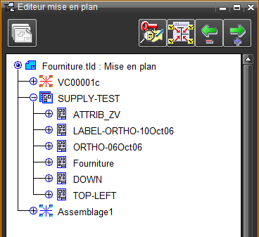 Dans le mode mise en plan, accessible avec la fonction Fenêtre mise en plan (2195), les icones permettent de connaître la nature des mises en plan.