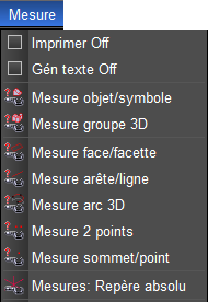 Mise en plan Le menu « Mesure » en mode Mise en plan propose une sélection de fonctions s'appliquant au 2D de la mise en plan (cartouche et autres), à l'habillage 2D des Zones vue , ainsi qu'aux entités 3D visibles dans les Zones vue ou dans les éventuelles fenêtres 3D hors mise en plan. (version 2016)