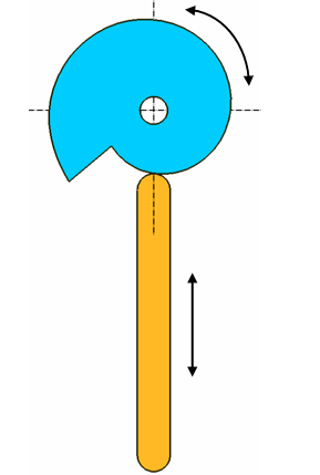 La pièce « poussoir » est en contact permanent avec sa pièce « menante » et se déplace de manière linéaire suivant une direction donnée. Cette fonction cinématique permet, comme la fonction « levier », de simplifier les calculs lors d’une analyse cinématique.