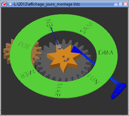 Le transfert des données est réalisé en deux étapes. La première transfert les objets volumiques et les ressorts ainsi que les matières ou couleurs qui leur sont associées, puis la deuxième transfert l'animation cinématique sélectionnée comprenant le déplacement et la rotation des objets ainsi que la déformation des ressorts ou les déplacements si une entité montage/démontage a été sélectionnée.