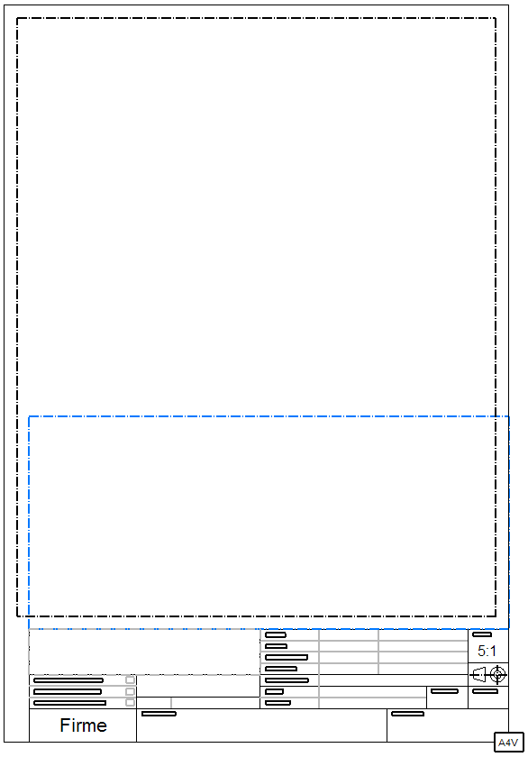 Dans l'exemple ci-contre, le rectangle noir est la zone de dessin, le rectangle bleu la zone de liste de nomenclature, et le rectangle gris la liste de révisions.