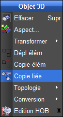 Un clone lié est créé à partir de la fonction « Copie liée », qui est accessible au travers du menu contextuel d’un objet 3D ou d’un composant 3D.