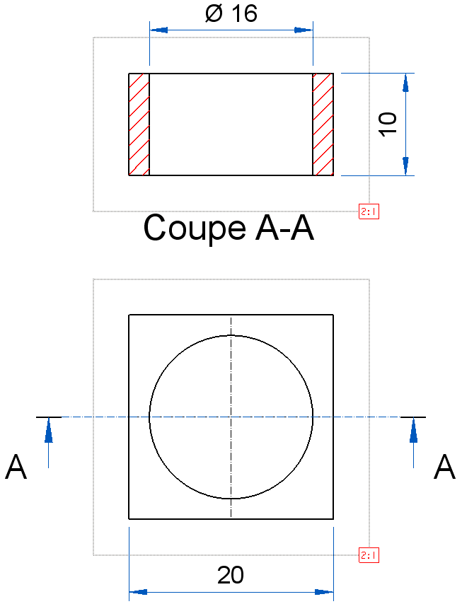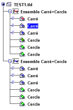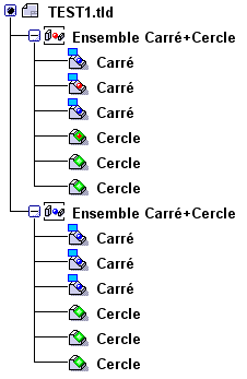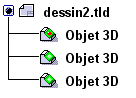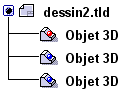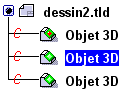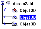 Lorsqu’une mise en plan est générée pour un objet 3D appartenant à une famille de clones, les icônes des objets 3D de la même famille sont également marqués avec le rectangle bleu indiquant qu’une mise en plan existe pour l’objet. C’est le clone de référence qui est porteur de la mise en plan liée.