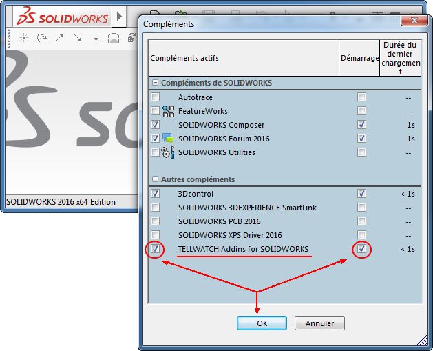 Activer "Tell Addins for SOLIDWORKS" et valider avec "OK".