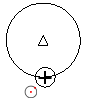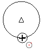 Déplacement libre du curseur avec un rayon de recherche (PT) Dans ce mode le curseur est affiché avec une pastille définissant un rayon de recherche automatique d’élément, d’intersection entre plusieurs éléments ou d’extrémité d’élément. Pour cela activer la fonction Point auto ON (136) disponible dans la zone du Desktop .