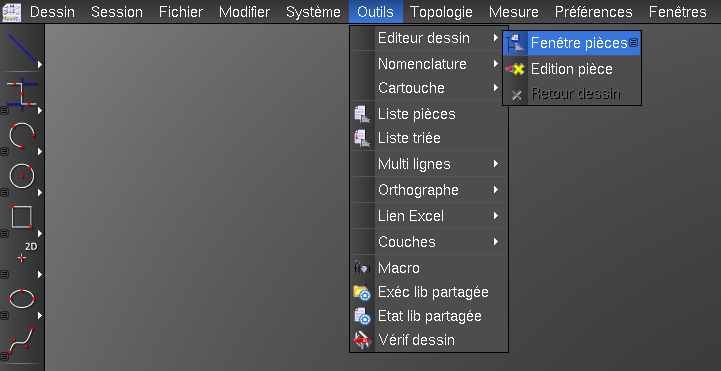 Les planches de fournitures peuvent être éditées au travers de l’éditeur de pièces (fonction « Fenêtre pièce » n°645).