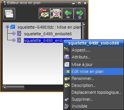 A travers du menu contextuel d’une planche de fournitures, la fonction "Edit mise en plan" permet d’éditer une planche de fournitures existante.