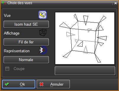 b. En cliquant avec la touche MODIF de la souris sur une vue ou un point d'intersection de la grille, la fenêtre ci-dessous s’affiche et le choix d’une nouvelle vue ou de modification de la vue existante est possible.