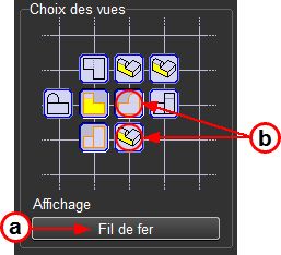Cliquer sur les icones pour activer ou désactiver les vues. a. Le menu déroulant permet de modifier l'affichages de toutes les zones vues.