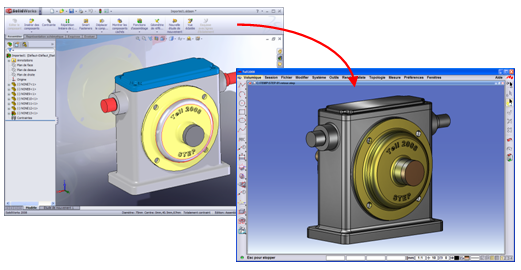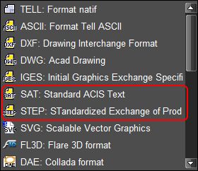 Pour exporter un format d'échange 3D, il suffit de choisir le format du fichier  dans la fonction "Sauver tout" (35) (STEP ou SAT).
