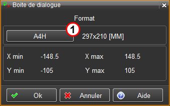 Les dimensions des formats pour l'impression sont initialisées dans Modif station . Cette fonction est accessible également en exécutant Pleine page en l'absence de tout élément.