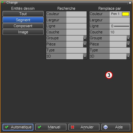 Ainsi dans cet exemple , tous les éléments "Segment" du dessin, passeront en plume 1 "jaune", ligne type "0" et passeront dans la couche 10.