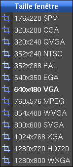 Une sélection sur l'icône de la fonction permet de choisir la taille d'un format standard d'image.