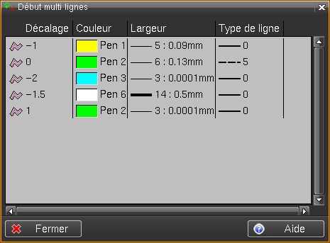 Type de ligne: Sélectionner le type de ligne désiré pour chaque ligne.