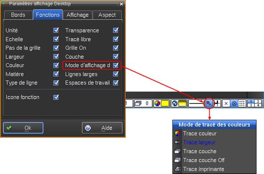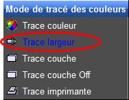 Permet de modifier le mode d'affichage et de traçage des couches en mode plume. Avec l'option couleur par largeur activée le mode de tracé 'Par Largeur' est ajouté à la liste.