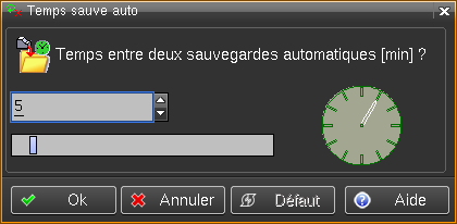 Permet de modifier l'intervalle de temps en minutes entre deux sauvegardes automatiques.