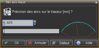 Permet de choisir la précision du tracé des arcs et des cercles sur le traceur. La valeur numérique représente la corde maximale entre l'arc réel et le segment tracé.