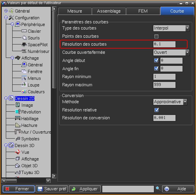 Cette fonction peut être modifiée dans les options de l'utilisateur ou dans Options affichage .