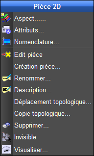 De nombreuses fonctions peuvent être appliquées aux entités du dessin depuis cette fenêtre, elles sont accessibles dans des menus contextuels.