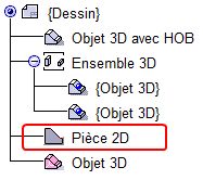 La fenêtre pièce est un éditeur de dessin. Cette liste comprend les entités suivantes : les entités 3D, les composants et les pièces.