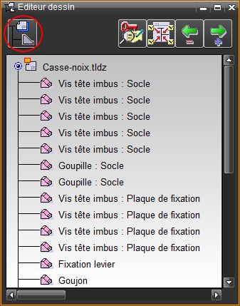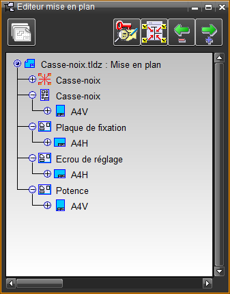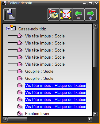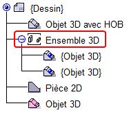 Ces flèches permettent de développer la structure arborescente des pièces et des objets 3D d’un ensemble affiché dans l’éditeur de pièces.