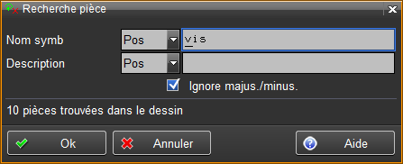 Le nom ou la description d’une pièce ou d’un objet doit être identique à la chaîne de caractères recherchés.