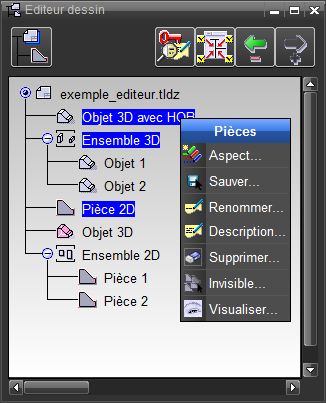 Les fonctions générales sont dans le haut de l’éditeur de pièces.