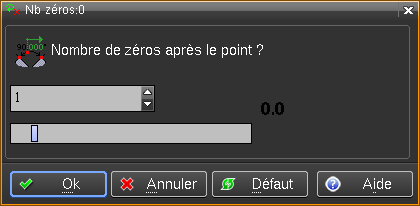 Permet de choisir le nombre de zéros non significatifs pour les cotes d'angle . Cette fonction peut être modifiée dans Modif préférences .