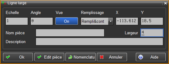 Remplissage: pour les contours fermés il est possible de créer un remplissage à l'intérieur de la pièce de deux types différents: Remplissage ou Rempli&cont .