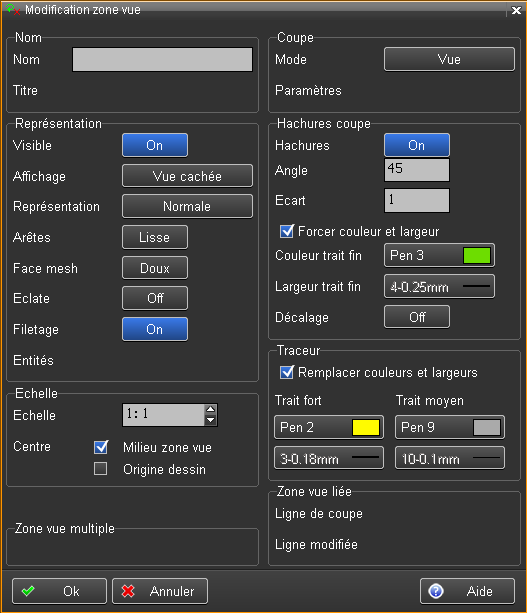 Vue: affichage ou non de la ligne large, pour cela il est aussi possible d'utiliser la fonction Visible o/n .