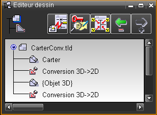 3D+2D -> 2D , Conv 4 vues , Face -> 2D , Coupe-> 2D , Limit-> 2D , Régénérer conversion