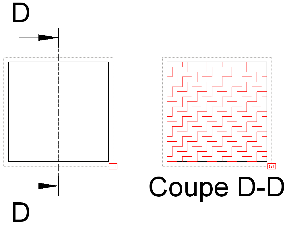 La fonction motif coupe (1196), associée à l'objet, a priorité sur tous les autres critères, le motif de la matière associée à l'objet vient ensuite, puis les paramètres de zone vue s'appliquent si on est dans une mise en plan (voir les hachures et motifs de coupe).