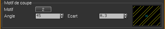 Motif de coupe Il est possible d’associer un type de hachures ou de motif qui sera affiché sur la partie coupée objets volumiques porteurs de cette matière.