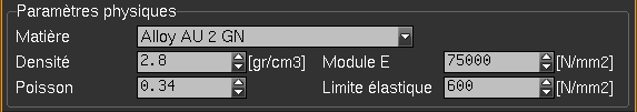 Paramètres physiques Choix d'une densité (masse volumique, initialisée à 1 par défaut) et d'autres grandeurs.