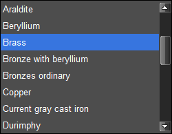Les paramètres physiques peuvent être sélectionnés dans la liste des matières physique.