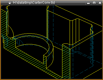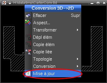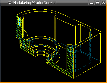 Permet d'obtenir une vue 2D de la face correspondant au plan de coupe. Toutes les faces des objets coupés du dessin sont converties. Une suppression des duplications de lignes est automatiquement exécutée lors de la conversion. La vue est générée sous forme de pièce qui est liée à la coupe, de ce fait, ne peut pas être éditée. Si l'objet 3D a été modifié, les pièces de conversions peuvent être mises à jour, ou figées, avec la fonction Régénérer conversion, ou en utilisant la fonction Modif sur les pièces de conversion. L'option "Figer", permet de supprimer le lien avec l'entité 3D.
