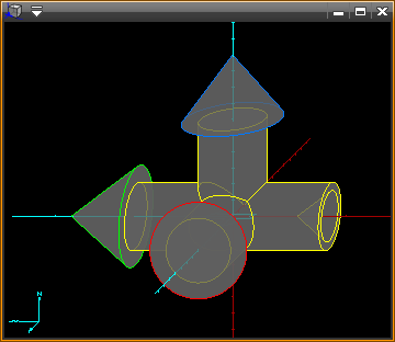 Vue oblique arrière avec un angle de fuite de 45 degrés et un facteur proportionnel de l'axe de fuite de 2.